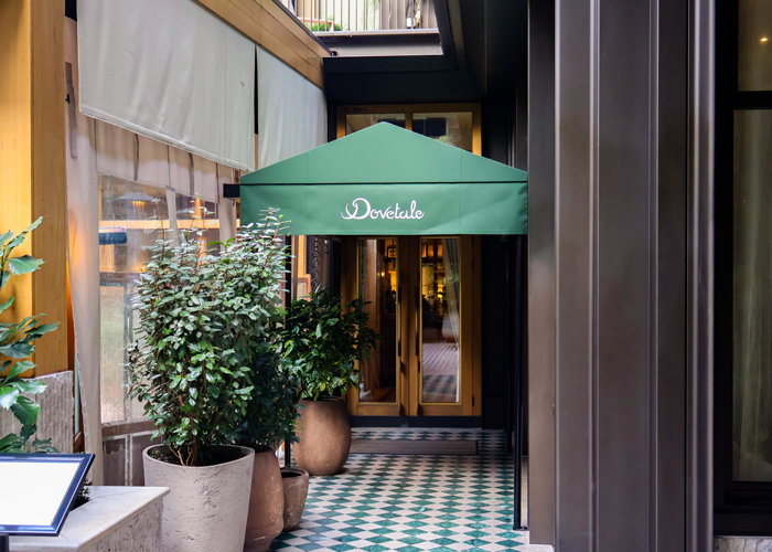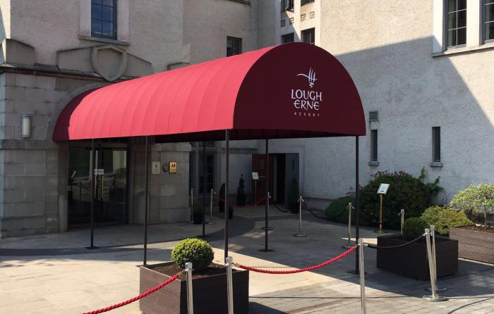 Restaurant entrances, hotel entrances, apartment entrances, connecting two properties & covering staircases.