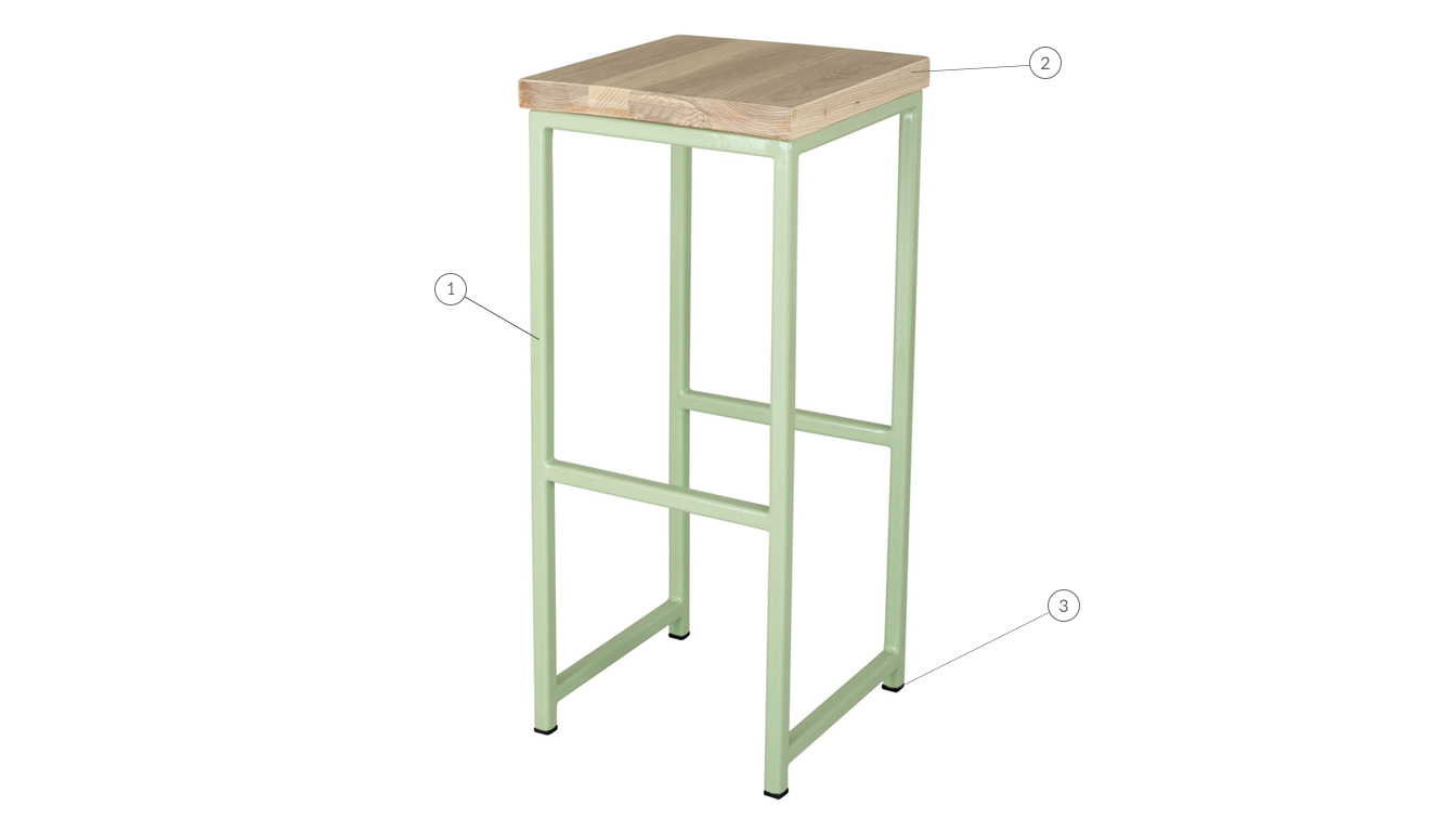1: metal frame 2: seat 3: pad
