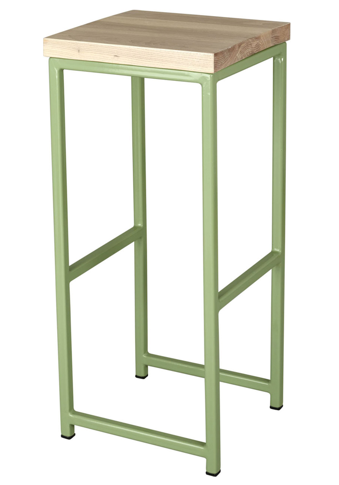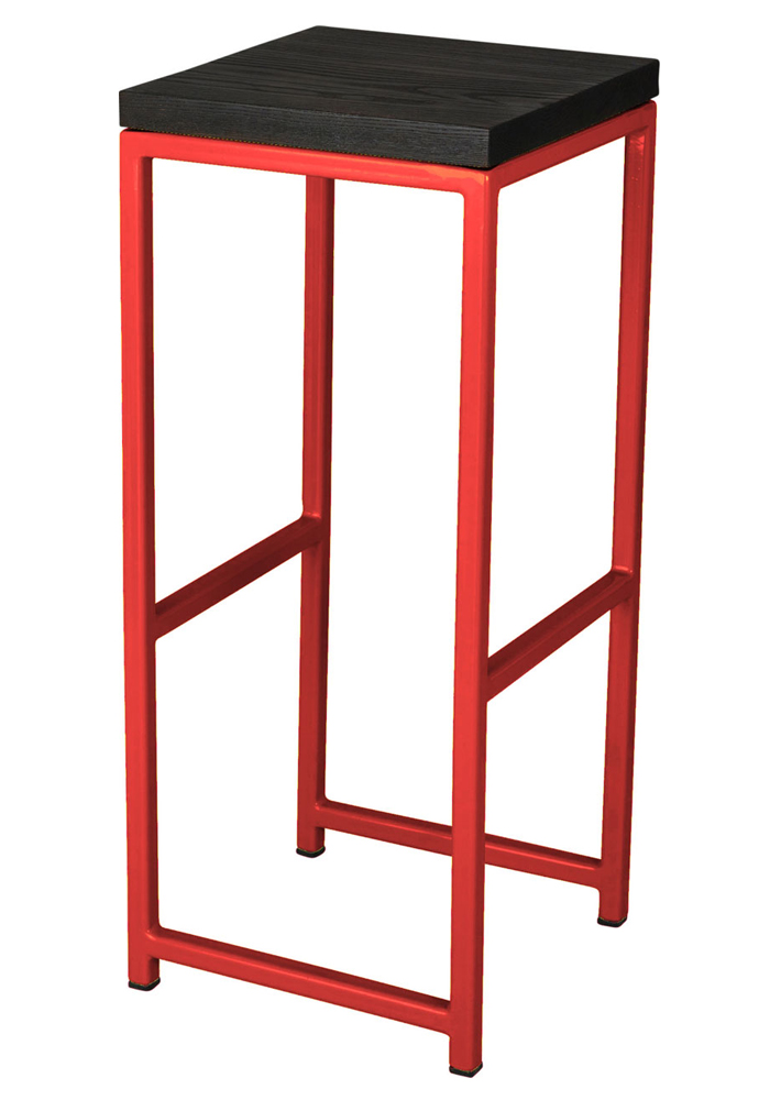 Classic bar stool with square steel frame combined perfectly with a choice of three hardwood finishes to create a design classic. The metal frame can be matched to any RAL colour specification, providing excellent branding and design possibilities. Strong, hard-wearing and practical, suitable for bars, pubs, cafes and restaurants.