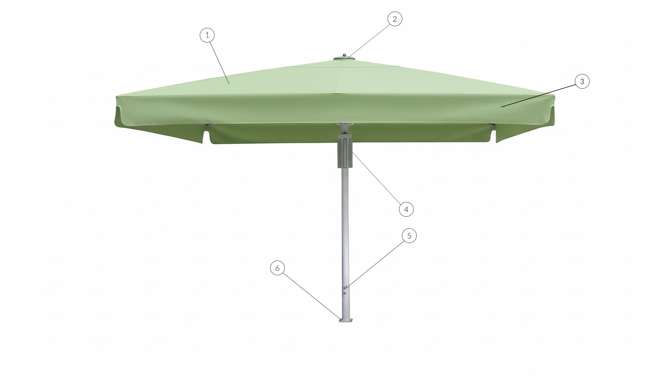 1: cloth cover 2: top plate 3: straight valance 4: high quality framework 5: operating mechanism 6: base plate