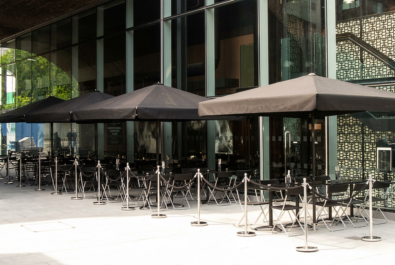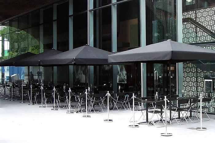 Our Tornado Parasol has to be one of the best parasols available in the world. Built to withstand winds of 100km/h it is the perfect parasol for the British climate. The Tornado Parasol is manufactured using the highest quality parts and fabrics. It is available in various sizes and with our rain-gutter system can protect an area of any size. All parasols have a fixture option of a stainless steel ground socket or surface mounted mobile bases.