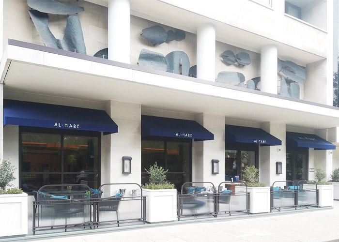 A consistent favourite with designers and architects our RIB® Wedge Canopy creates a sharp, minimalist look. It is a non-retracting canopy with a strong aluminium frame that gives it great versatility. We can extend our RIB® Wedge Canopies around multiple elevations, apply them to almost any type of fascia and curve the aluminium to create distinctive individual canopies. Famously used on some of Europe’s best known stores and buildings, the RIB® canopy has always been a popular choice. Originating in France, it’s enduring popularity has predominantly been due to the broad pallet of shapes and styles made possible with it’s clever construction. Able to adapt to most types of shopfronts and fascias, the bespoke curvature of the frame can work with minimalist or grand façades to ensure nothing of the buildings architecture is lost, only enhanced. Even after a century of use we are still creating RIB® canopies in a variety of classic, original and striking designs.